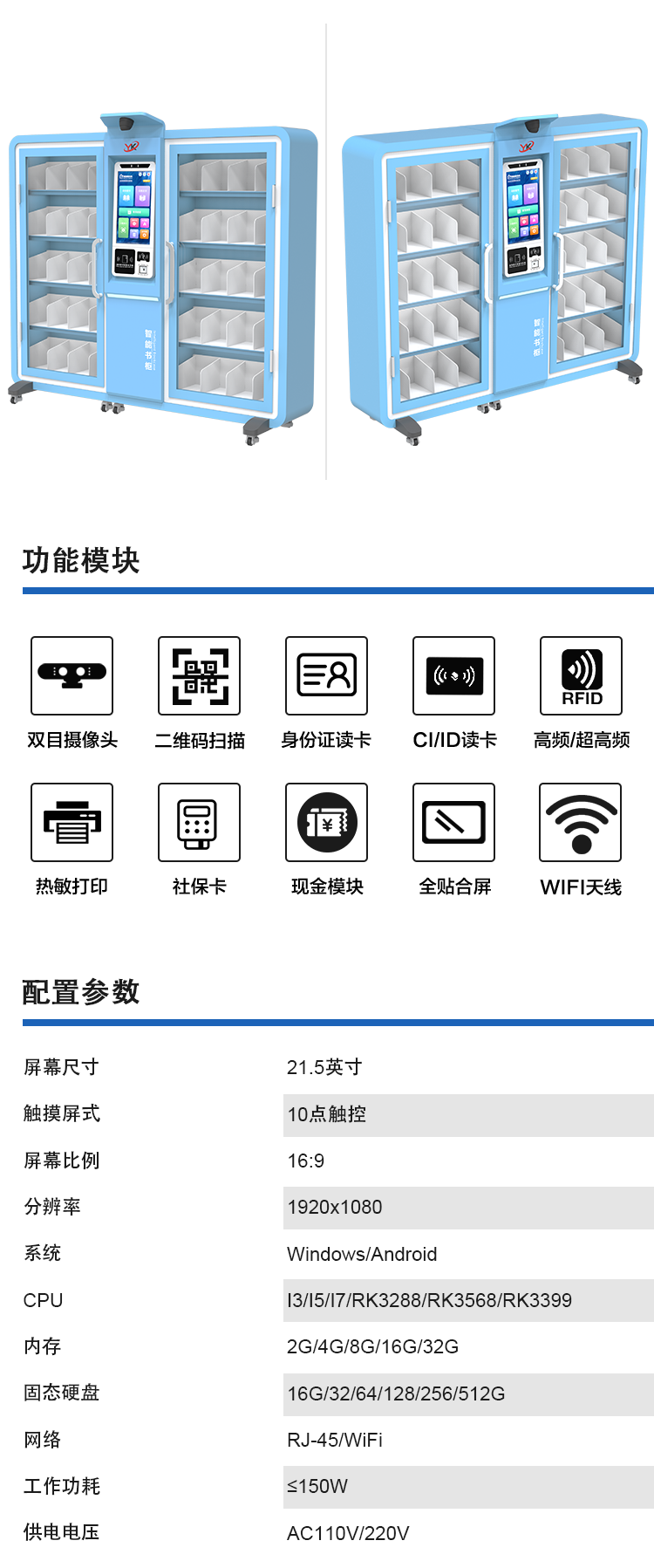 多功能一体机: 支持自助借还、人脸识别、图书感应、刷卡扫描、等功能,满足读者多种需求。